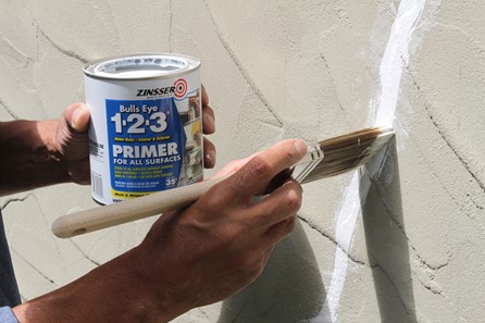 When the patch is dry, brush on Zinsser Bulls Eye 1-2-3 Primer before painting, to seal the patch and provide an even base coat for the paint to cover. Let it dry and paint.