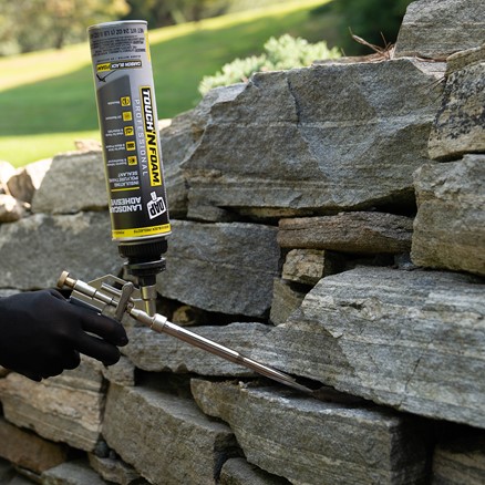 Loose mortar, cracks or other settling has caused rock, stone or concrete walls to develop gaps and cracks. Remove loose stones or rocks, clean around surface and spray with Landscape Foam.