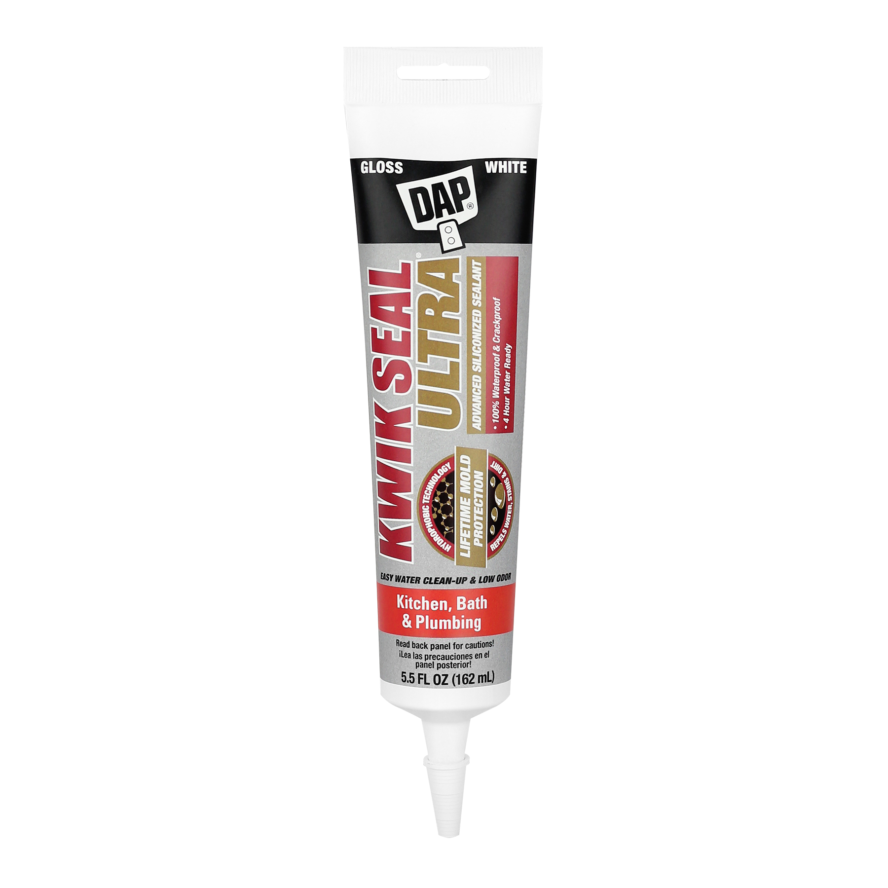 DAP KWIK SEAL ULTRA ADVANCED KITCHEN & BATH SEALANT features ultra-hydrophobic technology for ultimate water, dirt, and stain resistance. With a lifetime mold and mildew resistance guarantee, this sealant stays clean and fresh. It's 100% waterproof and crack-proof, safe for granite and marble, and offers strong adhesion and flexibility for long-lasting durability. Easy application, low odor, and water cleanup make it perfect for interior use.