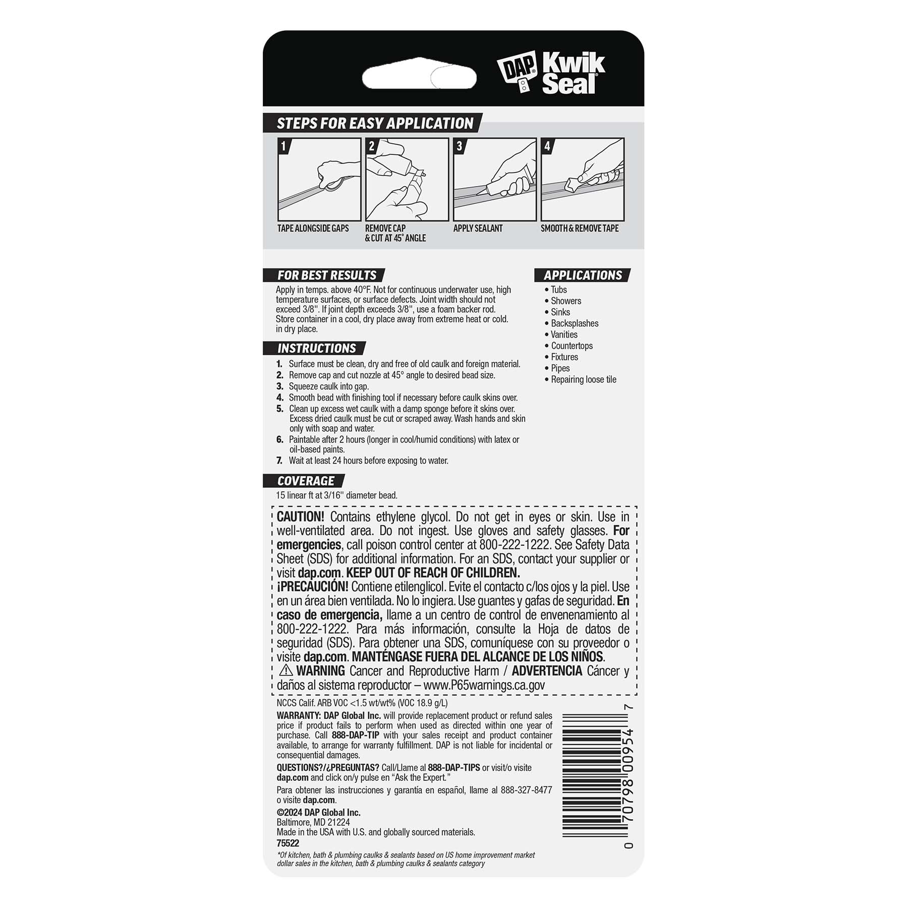 DAP Kwik Seal Caulk is a go-to solution for bonding and sealing. This easy-to-use acrylic latex formula bonds like glue and seals like caulk, providing a durable, mildew-resistant, watertight seal. With excellent adhesion and flexibility, it ensures a reliable seal for various applications. Say goodbye to leaks and mildew with DAP Kwik Seal Caulk.