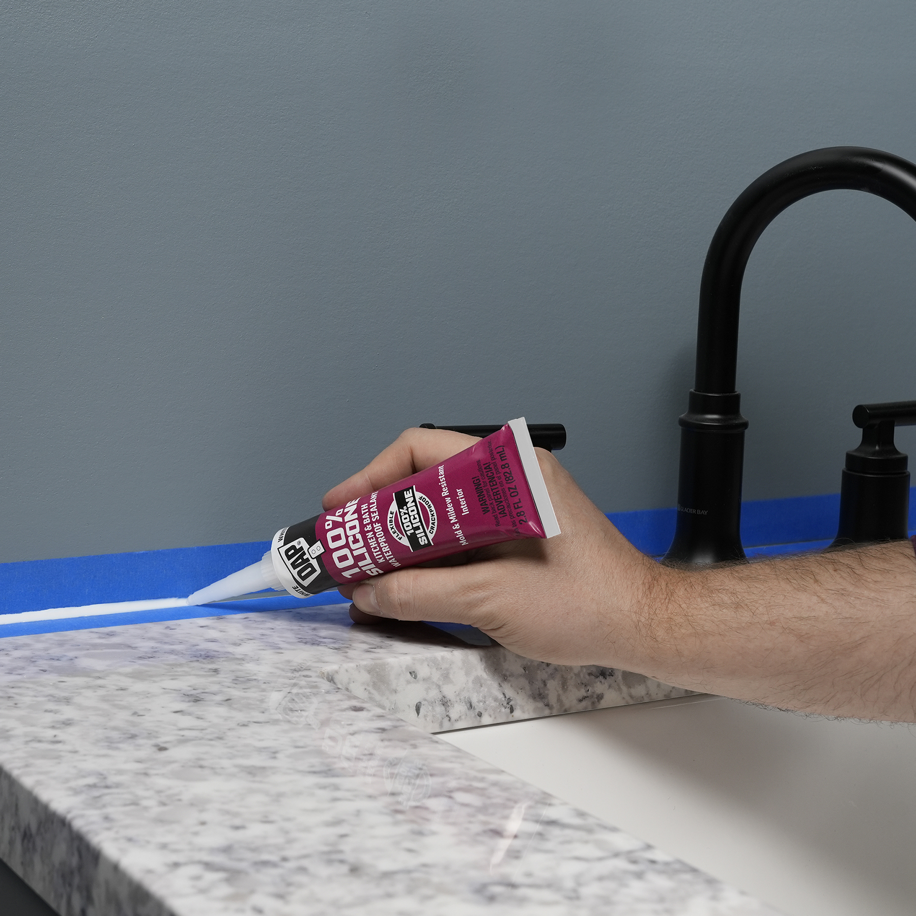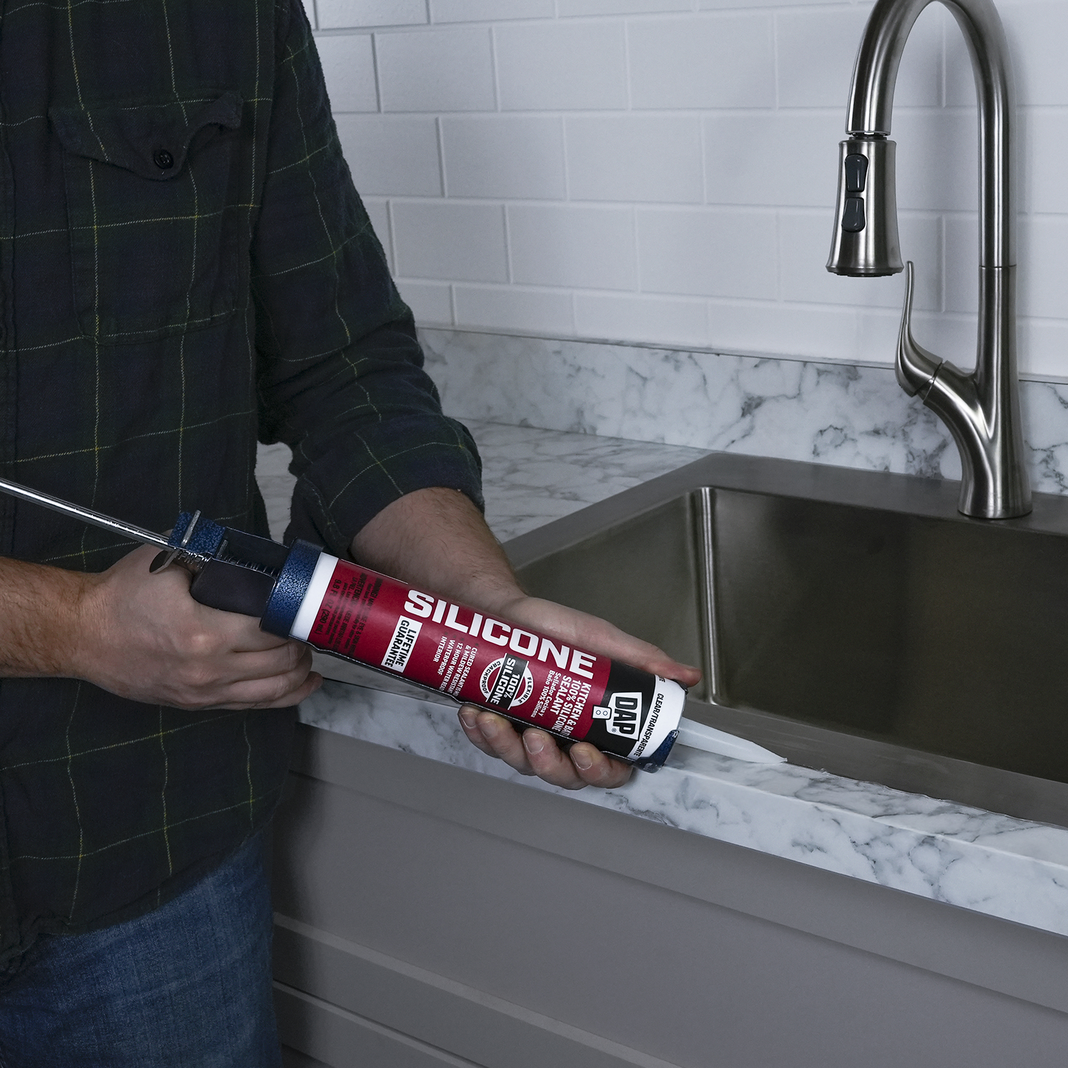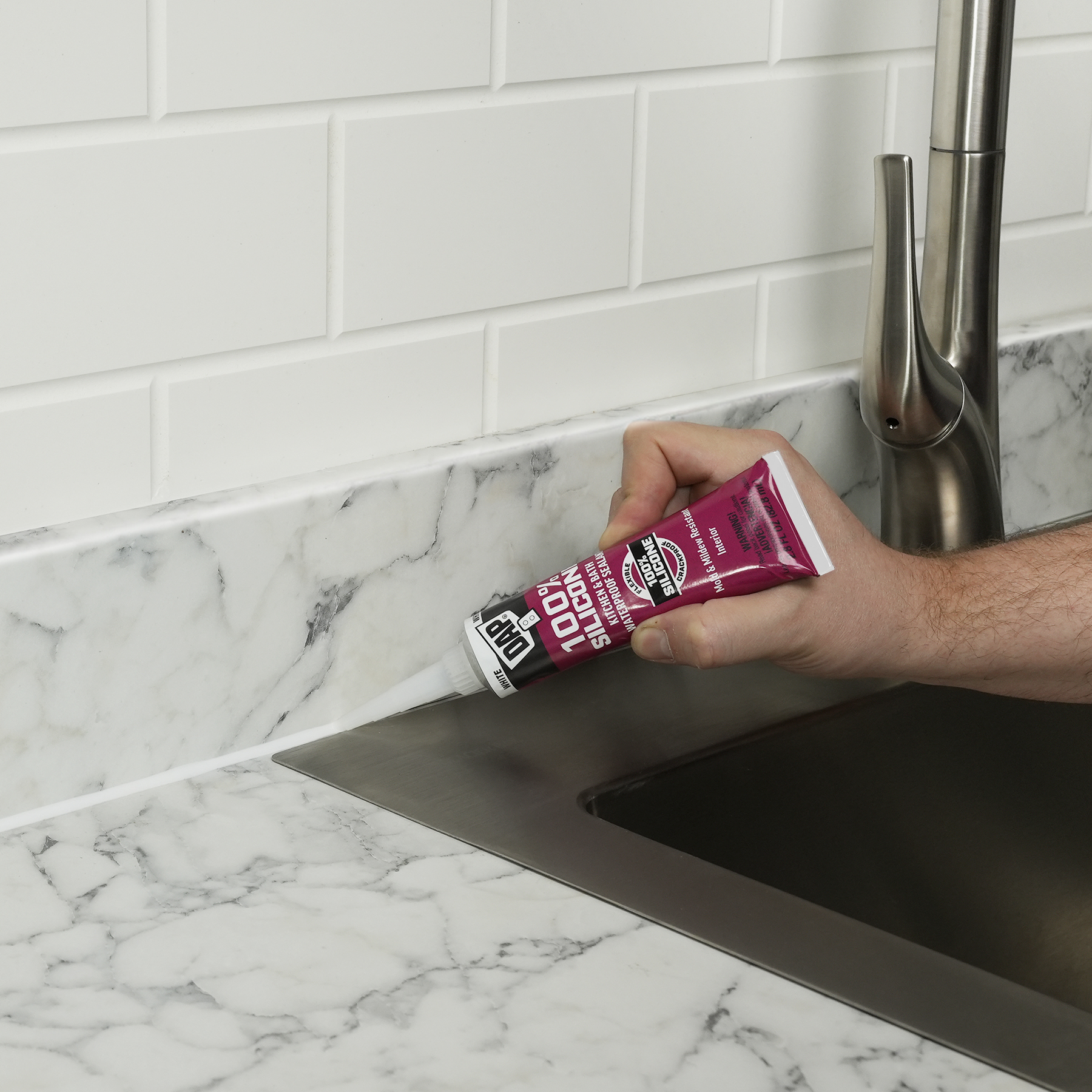 100% Silicone Rubber Kitchen, Bath & Plumbing Bath Sealant is a durable, 100% waterproof sealant for sealing out water and moisture in kitchen and bathroom applications. Sealant stays flexible and won’t crack. It is safe for incidental food contact. Meets FDA Reg 21, CFR 177.2600. Cured sealant is mold and mildew resistant. Interior use.