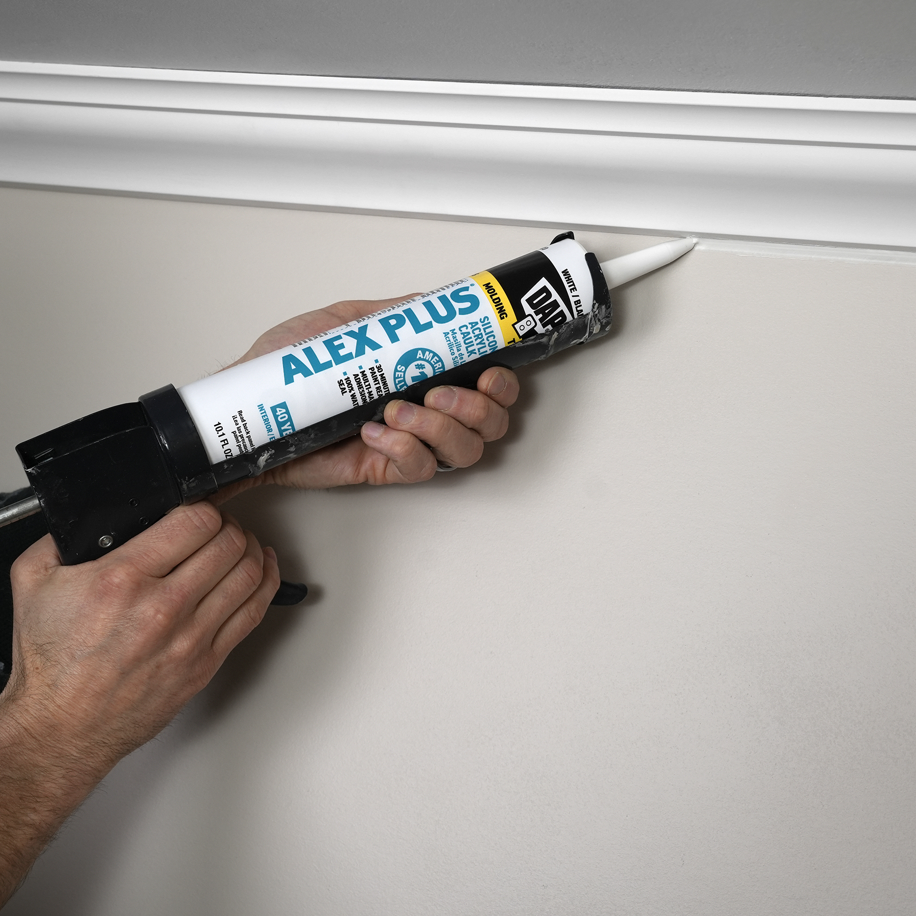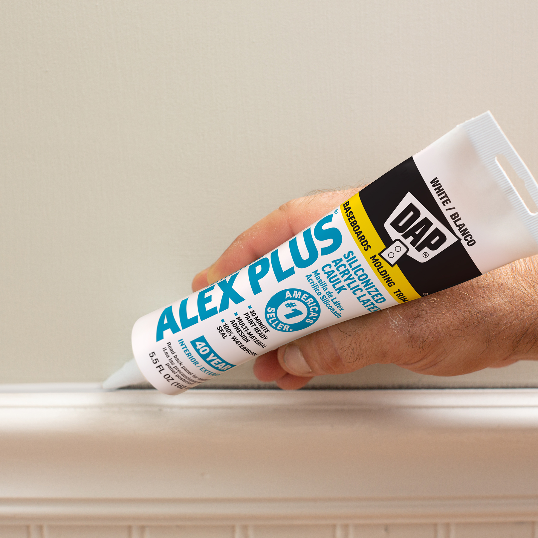 DAP® ALEX® acrylic latex caulks are ideal for filling and sealing gaps and cracks around window and door frames, molding, trim, baseboards, corner joints, and more. They have excellent adhesion to painted and unpainted wood, aluminum, vinyl, metal, brick, drywall, concrete and masonry.