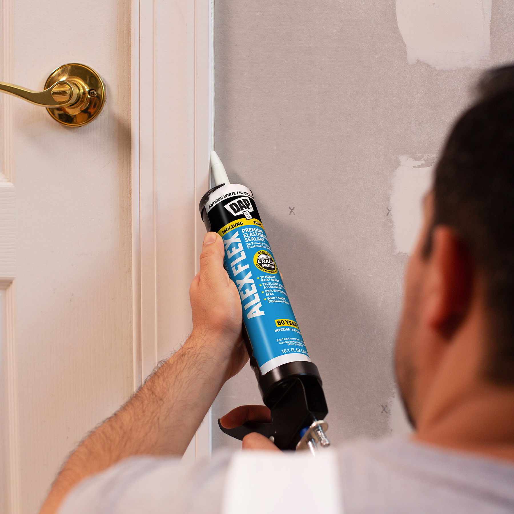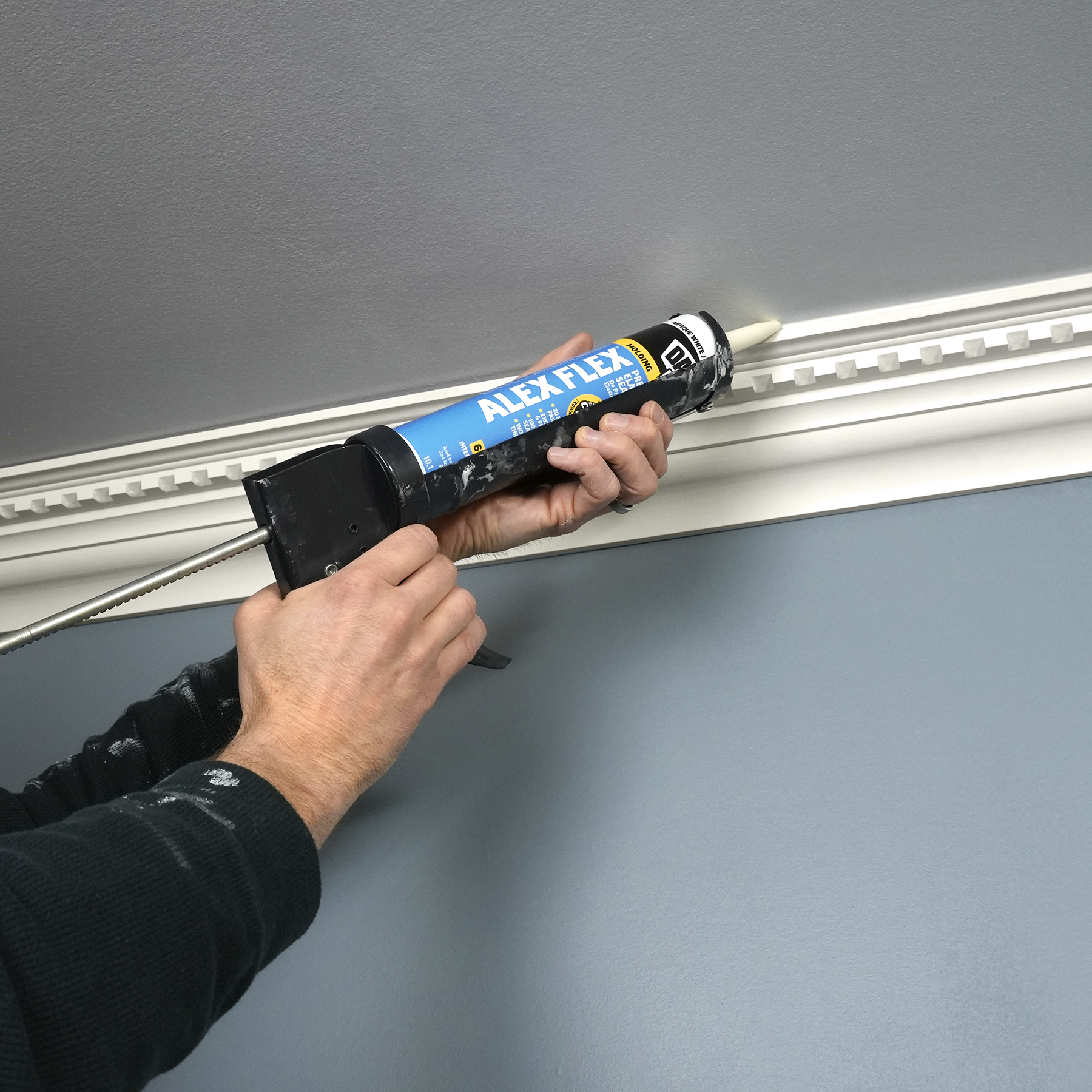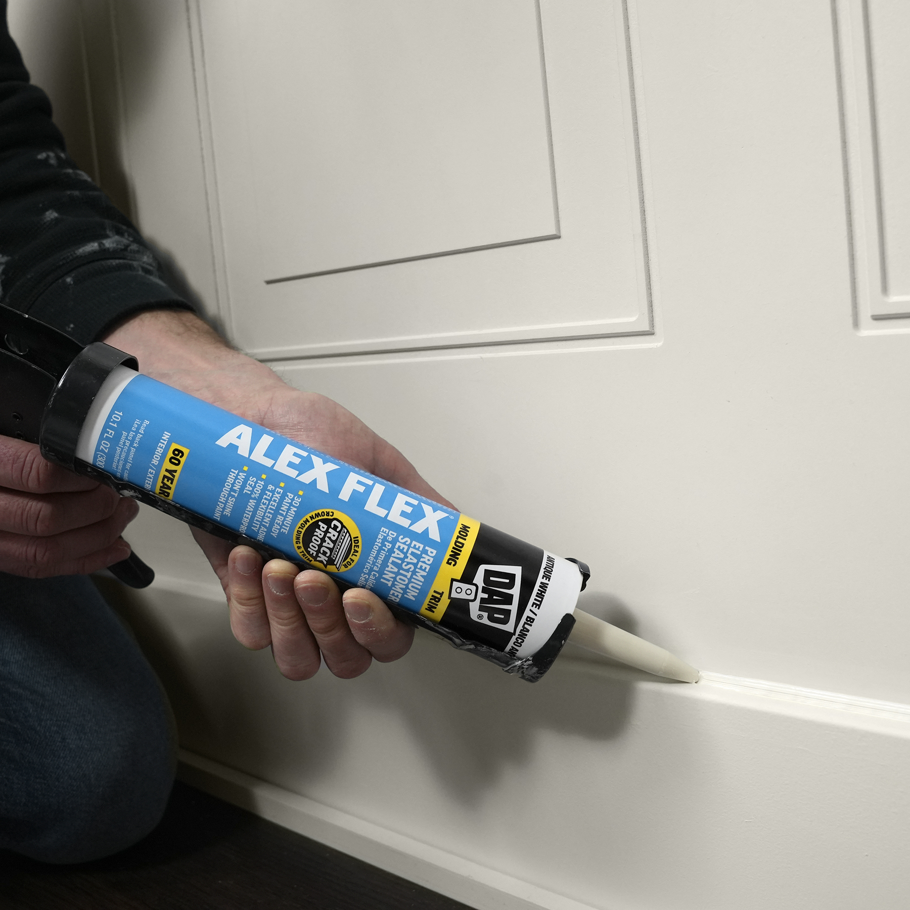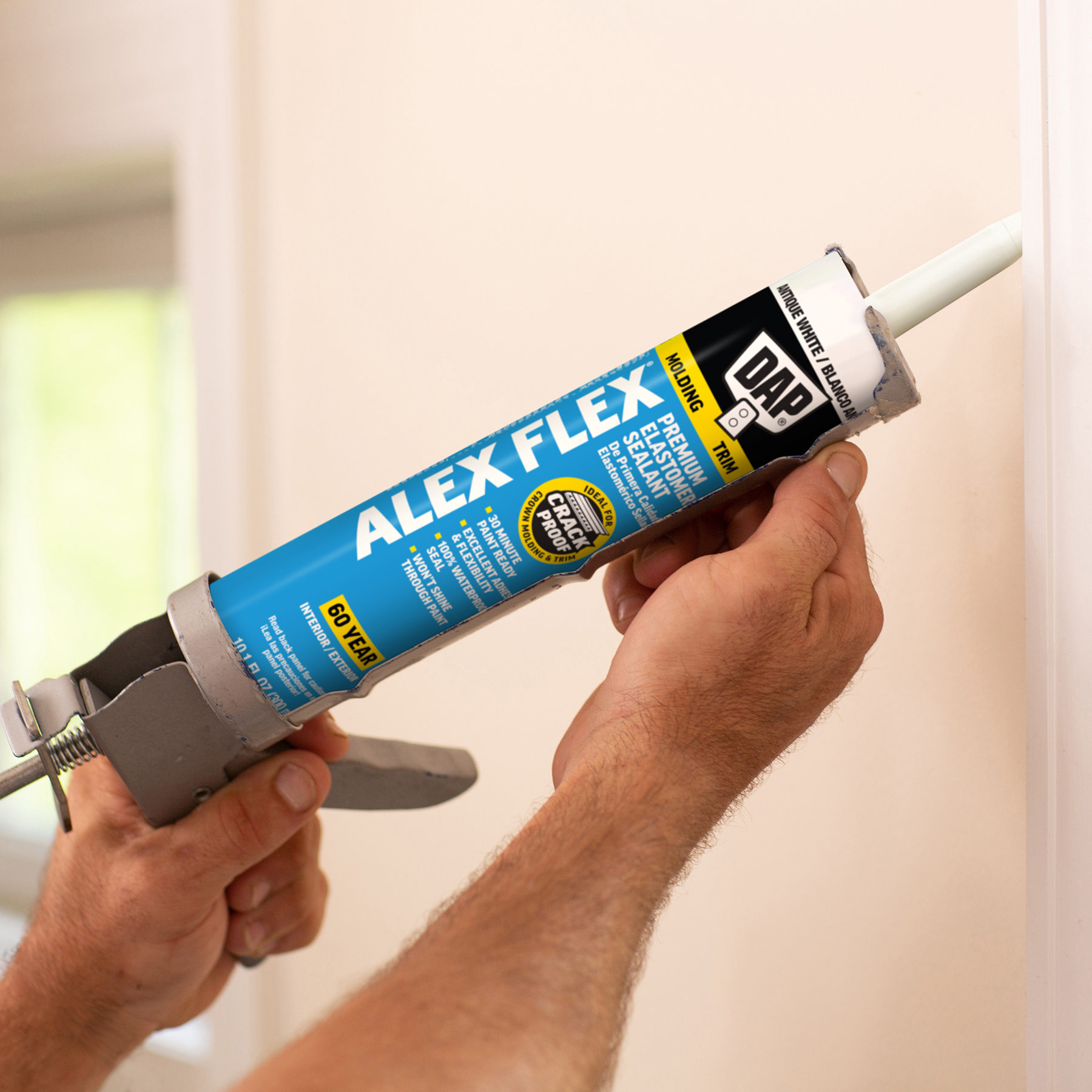 Sealing molding and trim can be a tricky project if the wrong sealant is used. Multi-piece crown molding can have up to five or more moving parts that must be sealed. Seasonal changes can cause wood trim to expand and contract, stressing seams year round. DAP® ALEX FLEX® provides maximum flexibility and adhesion for a crack proof seal, as well as fast paintability and no paint shiners, making it ideal for molding and trim projects.