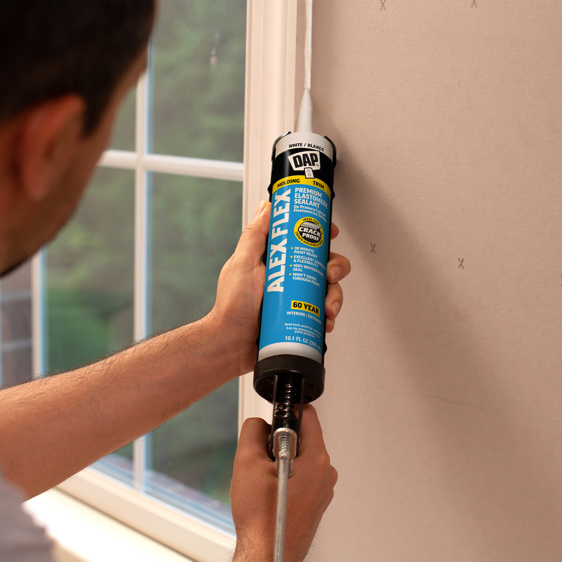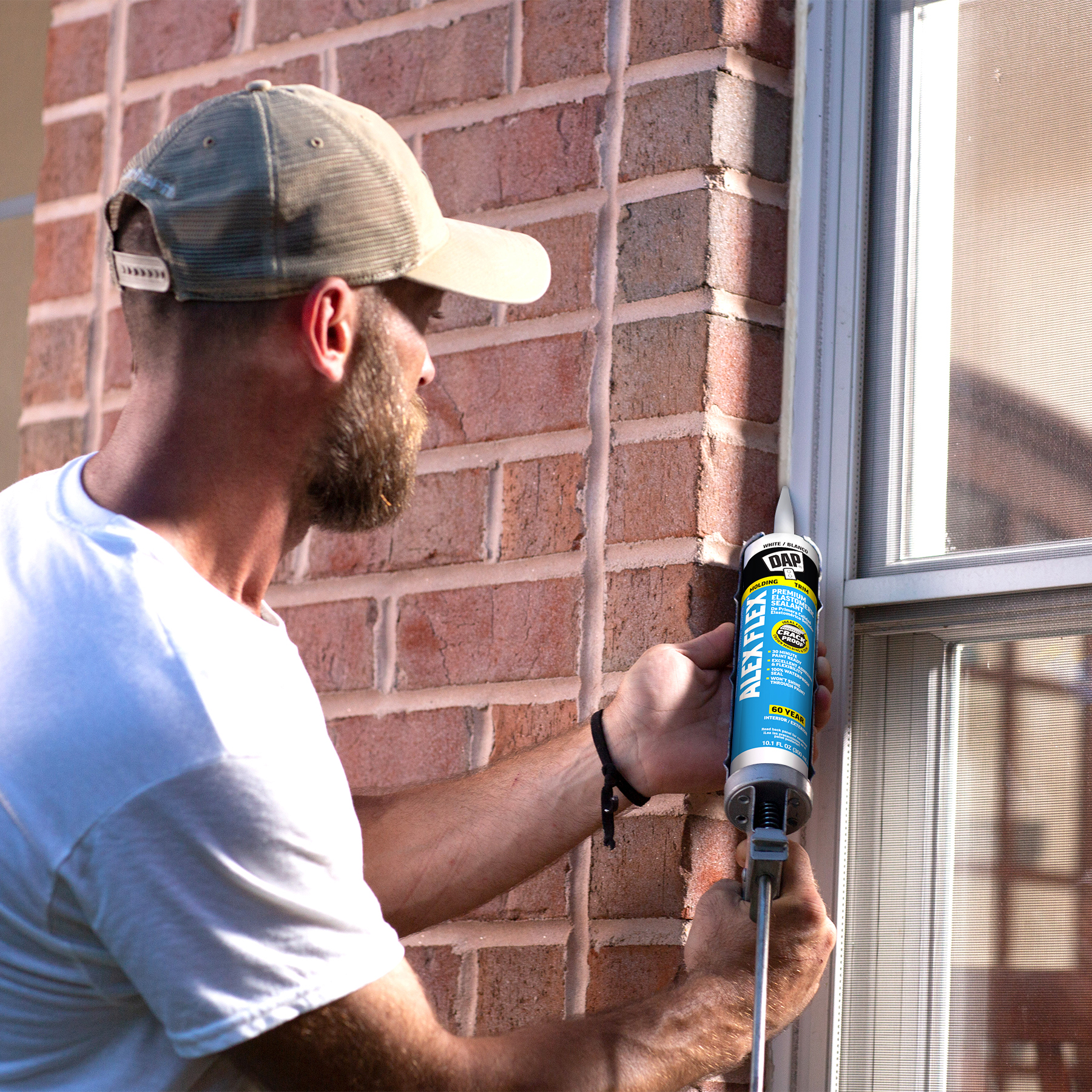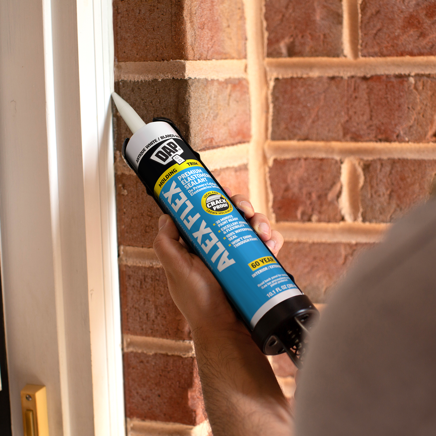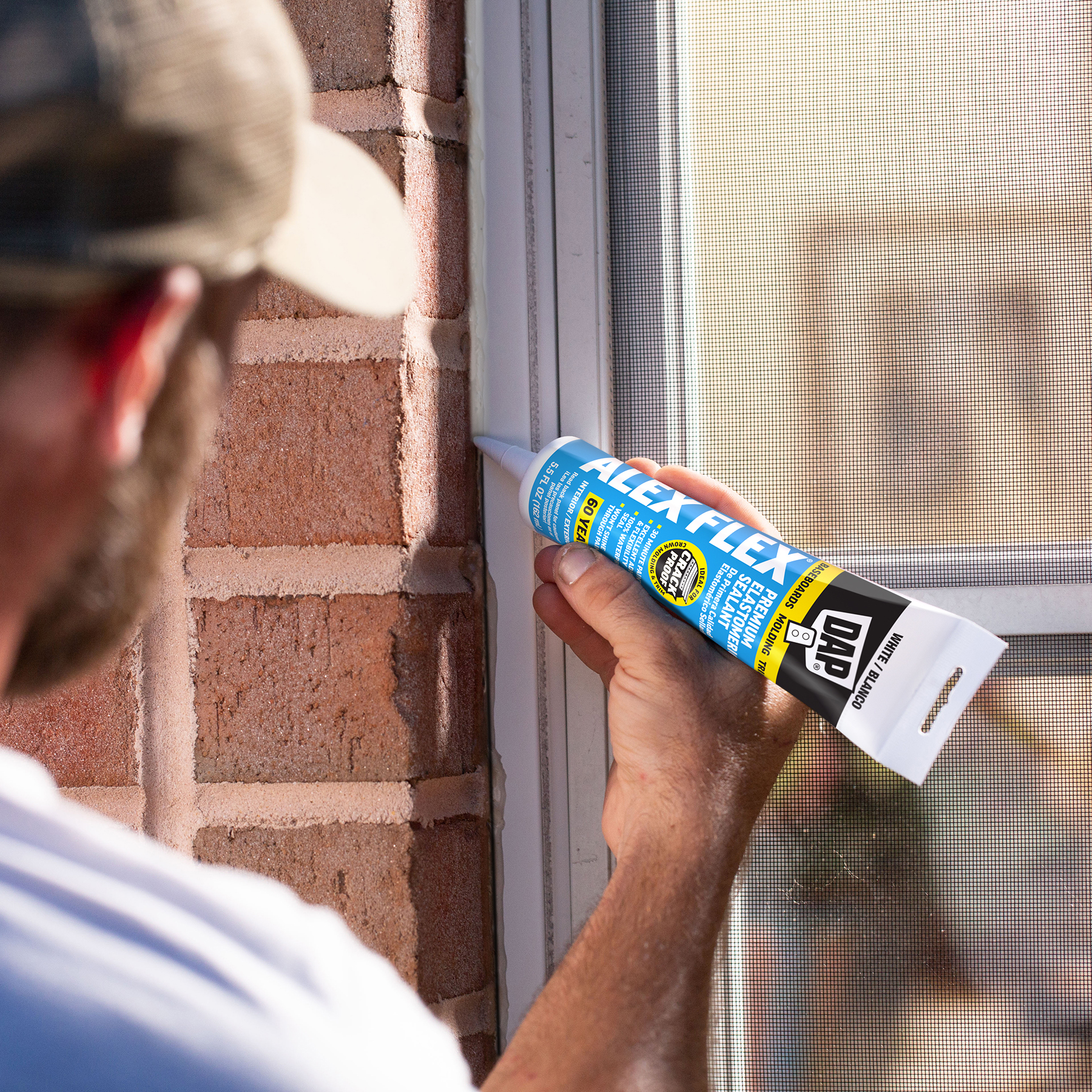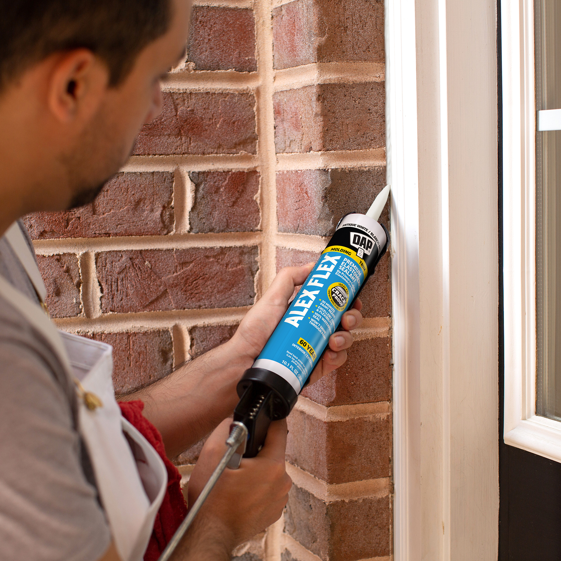 DAP® ALEX® acrylic latex caulks are ideal for filling and sealing gaps and cracks around window and door frames, molding, trim, baseboards, corner joints, and more. They have excellent adhesion to painted and unpainted wood, aluminum, vinyl, metal, brick, drywall, concrete and masonry.