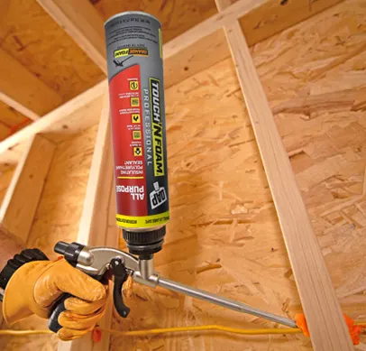 DAP Foam offers the industry’s most complete line of expanding spray foam products for use in and around the home. Touch 'n Foam Professional's lineup of professional gun foams, one-component canisters and two-component foam systems can eliminate air leaks and drafts, seal gaps and cracks and insulate against the elements to make homes comfortable, quiet, cozy and more energy efficient all year round.
