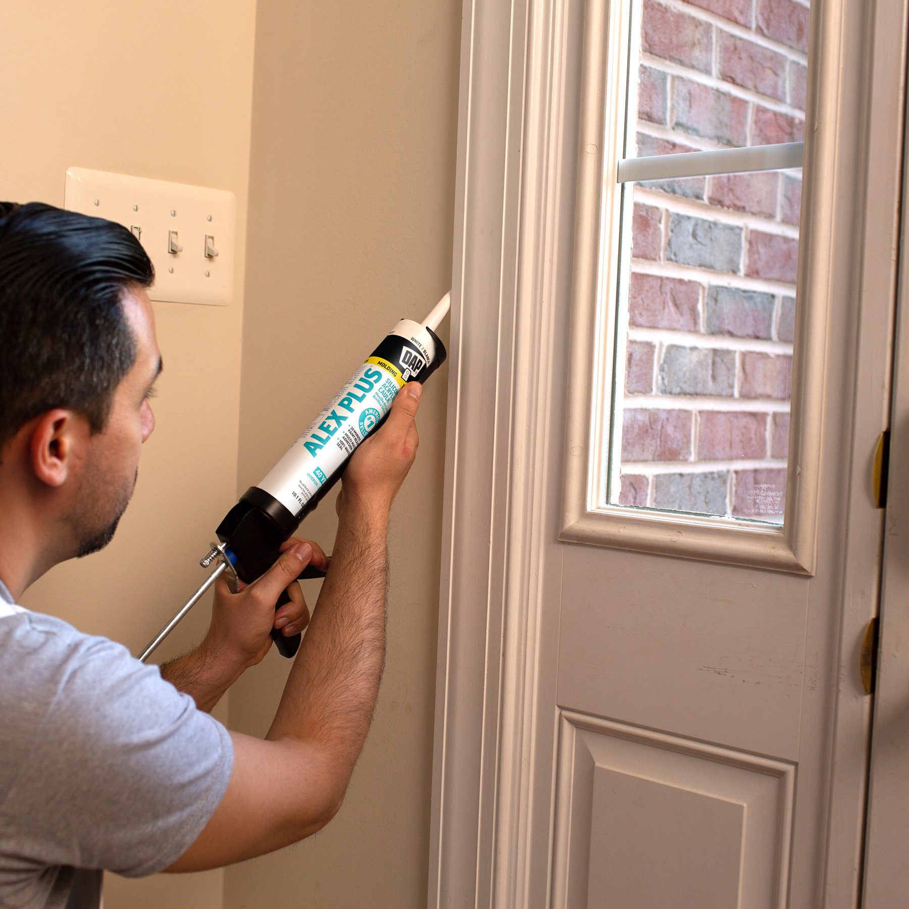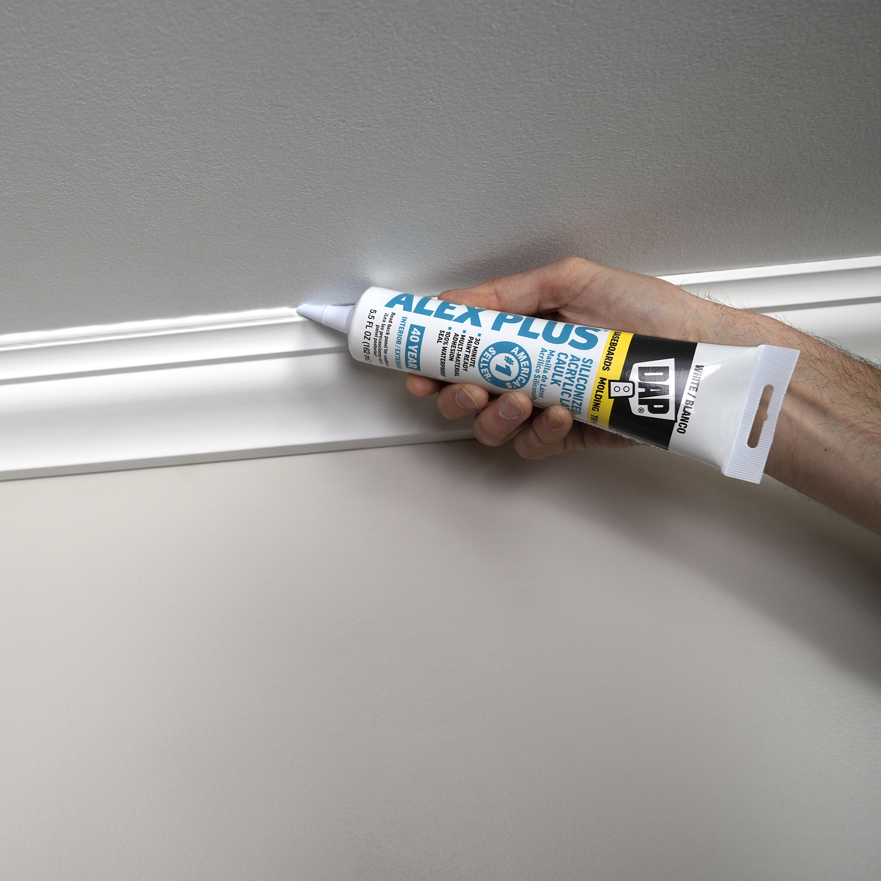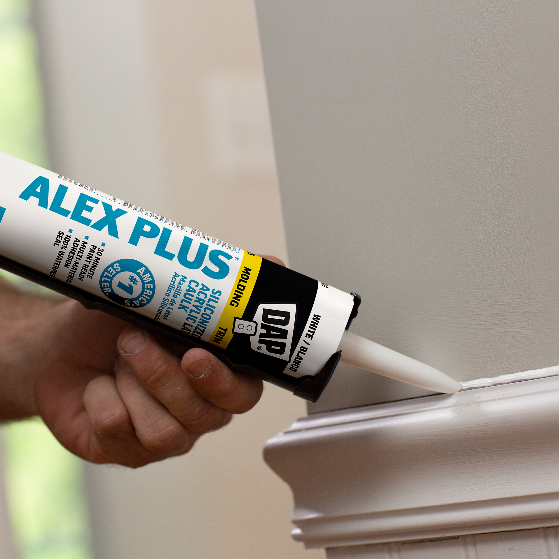 DAP® ALEX® acrylic latex caulks are ideal for filling and sealing gaps and cracks around window and door frames, molding, trim, baseboards, corner joints, and more. They have excellent adhesion to painted and unpainted wood, aluminum, vinyl, metal, brick, drywall, concrete and masonry.
