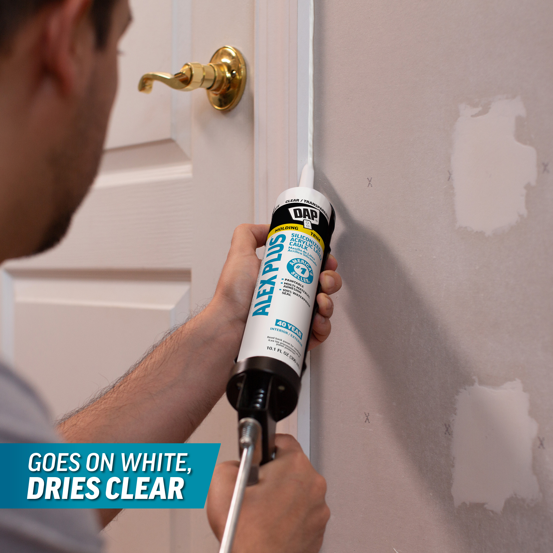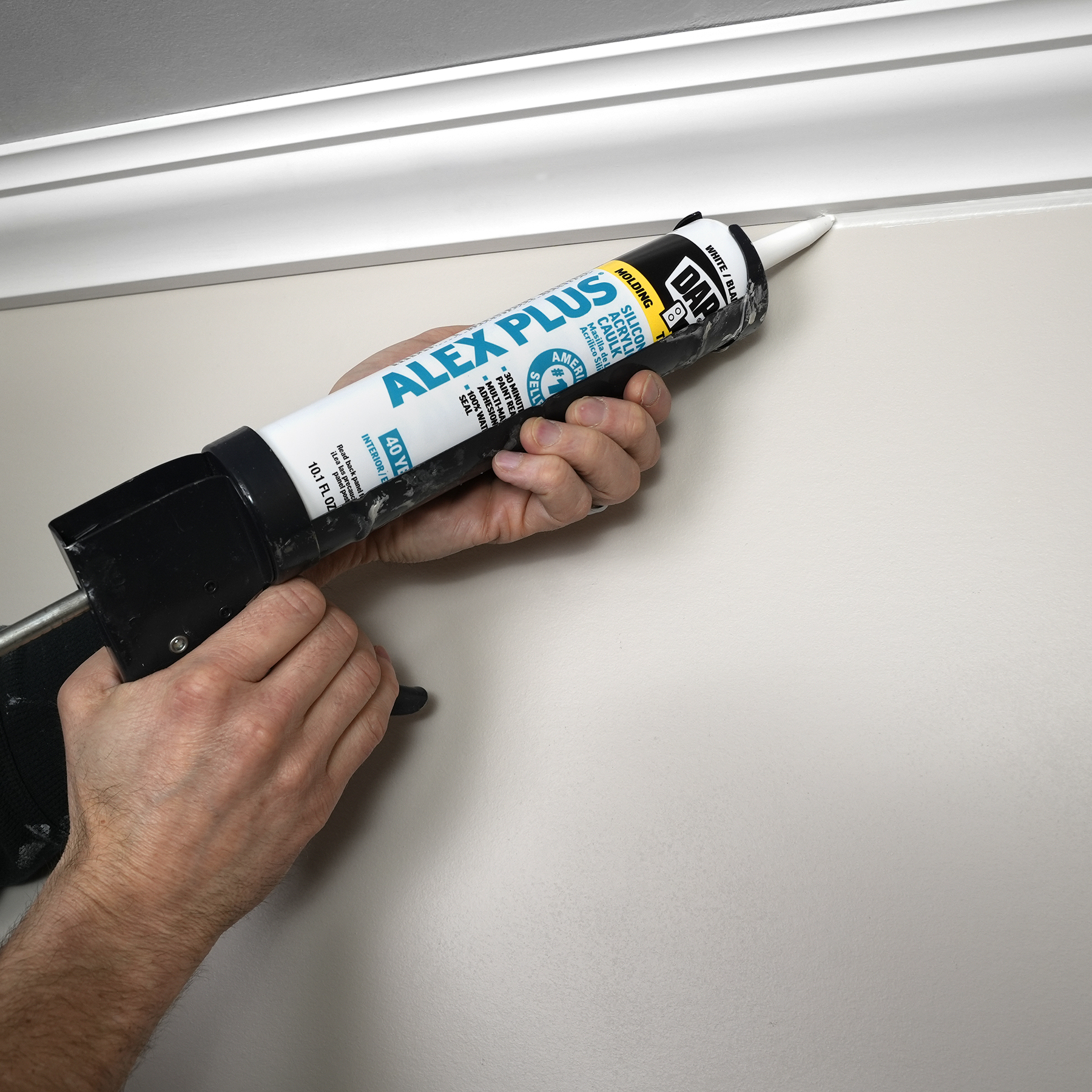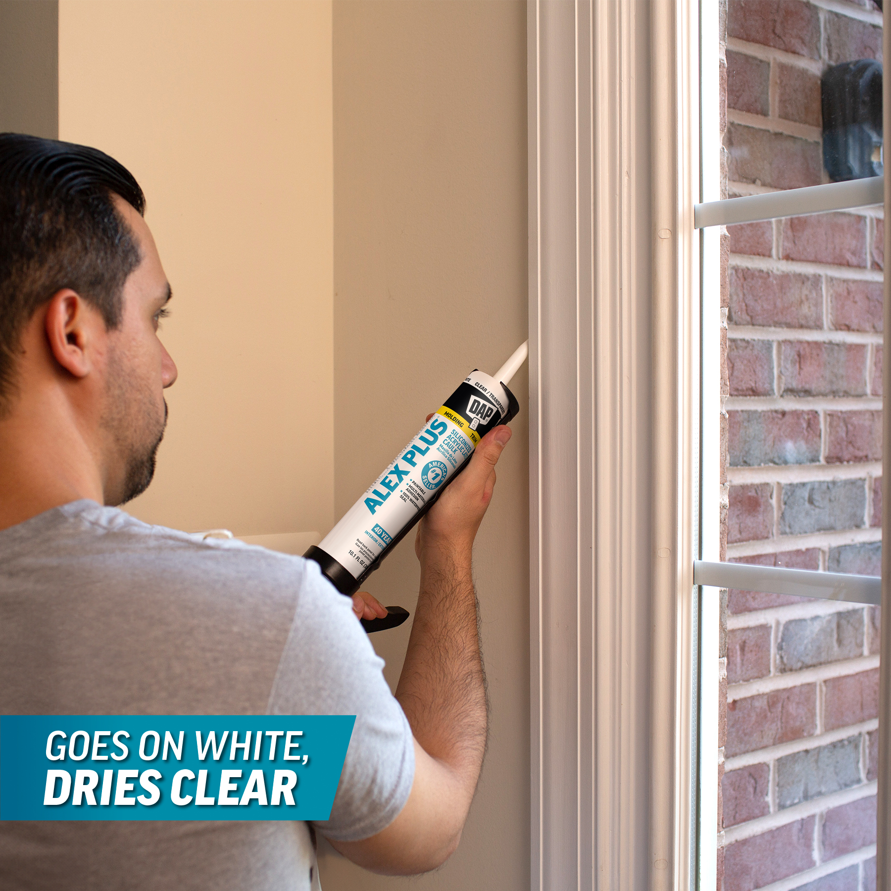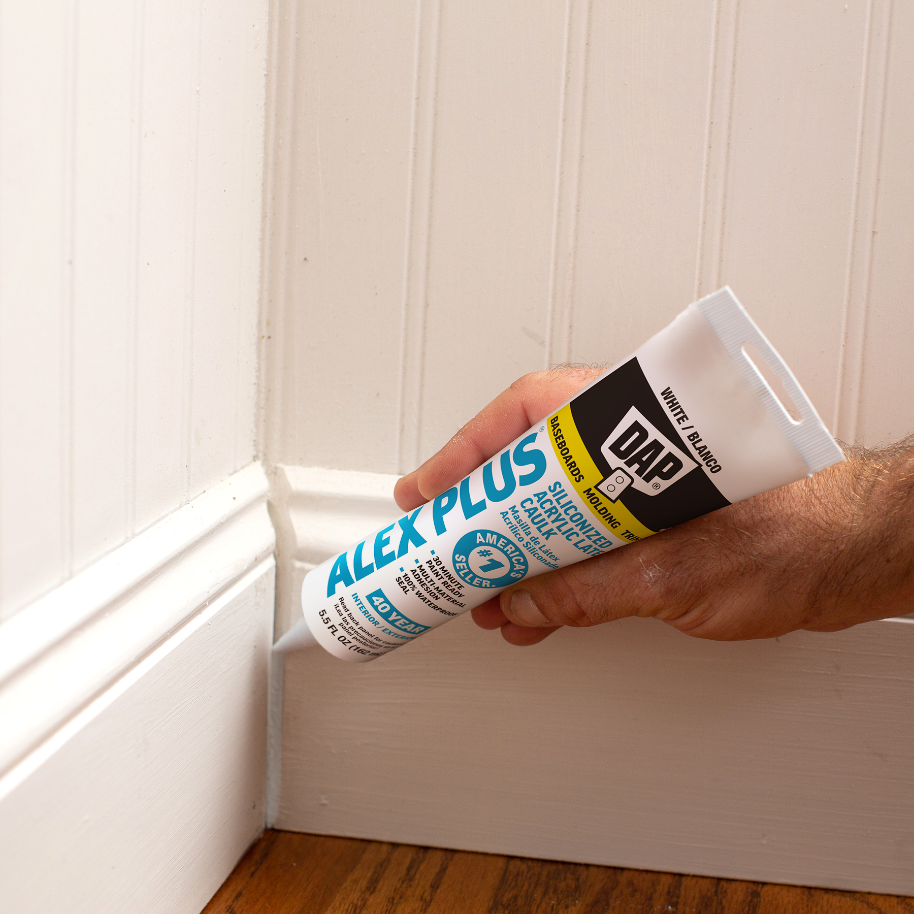 DAP® ALEX® acrylic latex caulks are ideal for filling and sealing gaps and cracks around window and door frames, molding, trim, baseboards, corner joints, and more. They have excellent adhesion to painted and unpainted wood, aluminum, vinyl, metal, brick, drywall, concrete and masonry.